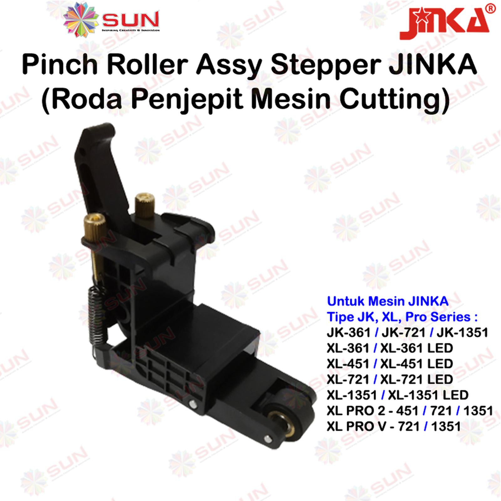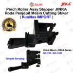 - Pinch Roller Assy Stepper: Sebuah perakitan (assembly) mekanisme yang terdiri dari roda penjepit (pinch roller) dan motor stepper. Fungsinya untuk mencengkeram dan menggerakkan media secara presisi melalui mesin cutting dengan langkah-langkah yang sangat akurat, dikendalikan oleh motor stepper.