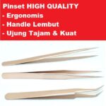 - Tweezer Bengkok/Lengkung: Pinset dengan ujung melengkung untuk akses lebih mudah ke area sempit.
