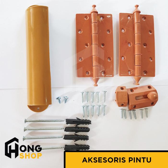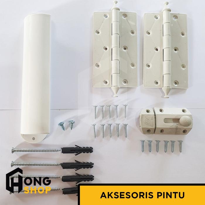 Kelengkapan Paket1 Unit Daun & Kusen, 1 Pasang Engsel PVC, 1 Slot PVC, 1 Tarikan, Skrup & Fischer