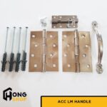 | Kelengkapan Paket | 1 unit kusen & daun pintu, 1 pasang engsel stainless, 1 unit slot, 1 handle stainless, 1 set fischer & skrup, 1 tarikan stainless bonus, kaca es |