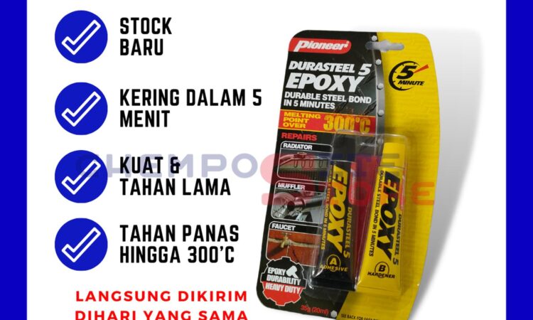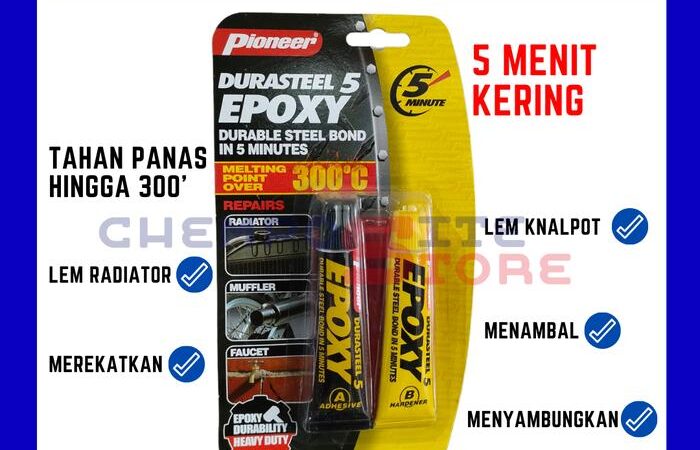 Temukan kekuatan rekat terpercaya untuk berbagai material dengan Pioneer Durasteel Lem Epoxy. Formulasi unggulnya mengandung lebih dari 80% serbuk besi, menjadikannya lebih padat dan tahan lama dibandingkan produk sejenis. Lem epoxy dua komponen ini terdiri dari resin dan hardener yang, ketika dicampur, menciptakan ikatan yang sangat kuat dan tahan terhadap suhu ekstrem hingga 300°C.