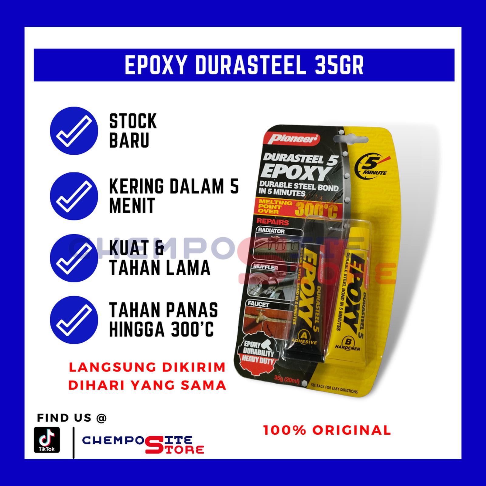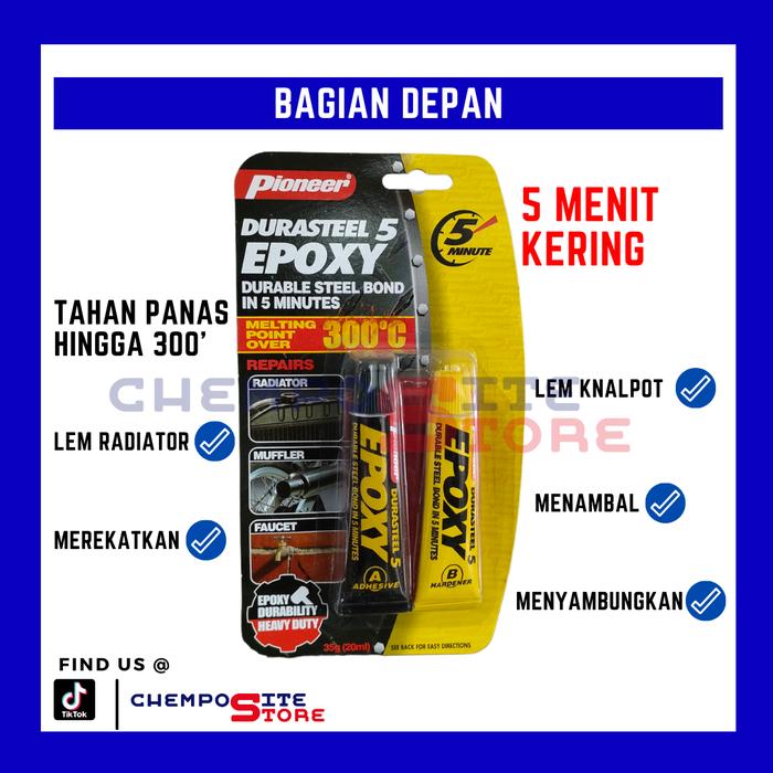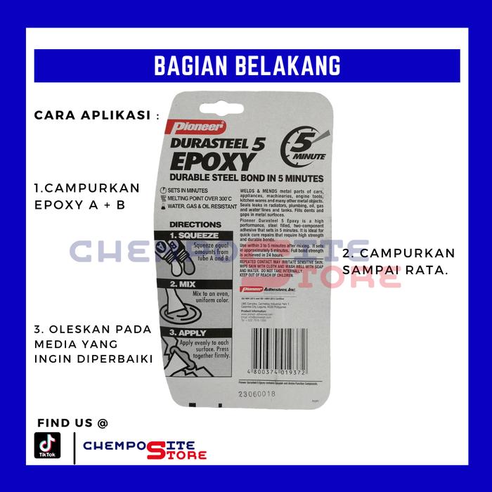 Temukan kekuatan rekat terpercaya untuk berbagai material dengan Pioneer Durasteel Lem Epoxy. Formulasi unggulnya mengandung lebih dari 80% serbuk besi, menjadikannya lebih padat dan tahan lama dibandingkan produk sejenis. Lem epoxy dua komponen ini terdiri dari resin dan hardener yang, ketika dicampur, menciptakan ikatan yang sangat kuat dan tahan terhadap suhu ekstrem hingga 300°C.