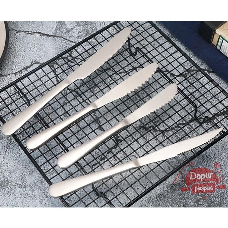 Tingkatkan suasana bersantap di rumah atau bisnis kuliner Anda dengan koleksi pisau makan stainless steel premium dari Dapur Plus Plus. Dirancang khusus untuk fungsi dan estetika, setiap pisau terbuat dari material berkualitas tinggi yang tebal, kokoh, dan tahan lama. Desainnya yang elegan dan mengilap memberikan kesan mewah pada setiap pengaturan meja makan, cocok untuk acara formal maupun santai sehari-hari.