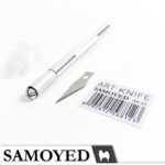 Desainnya yang menyerupai pulpen memastikan kenyamanan dan kendali yang optimal, mengurangi kelelahan meski digunakan dalam waktu lama. Untuk menjaga ketajaman mata pisau, sangat disarankan menggunakan cutting mat. Mata pisau dapat diganti dengan mudah menggunakan refill blades Samoyed AKB (kode: 0105, 0305, 0405, 1105, 1605).