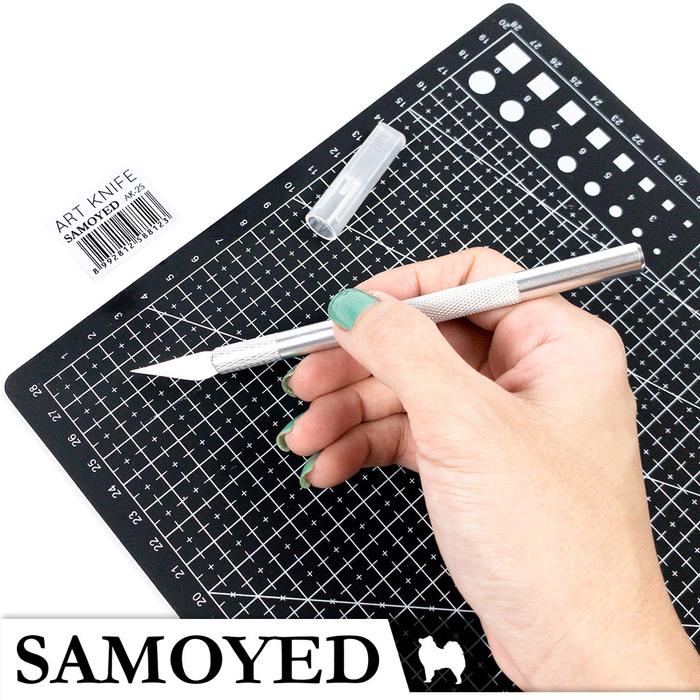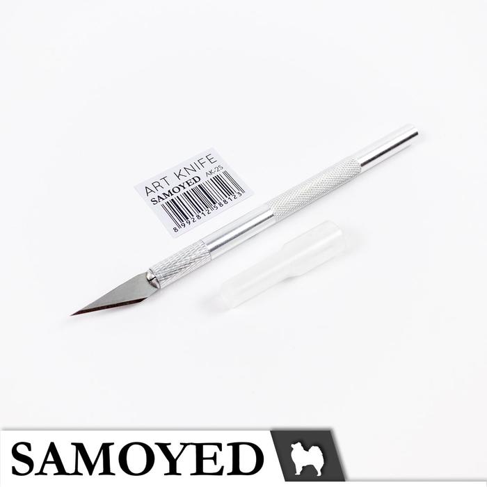 Desainnya yang menyerupai pulpen memastikan kenyamanan dan kendali yang optimal, mengurangi kelelahan meski digunakan dalam waktu lama. Untuk menjaga ketajaman mata pisau, sangat disarankan menggunakan cutting mat. Mata pisau dapat diganti dengan mudah menggunakan refill blades Samoyed AKB (kode: 0105, 0305, 0405, 1105, 1605).
