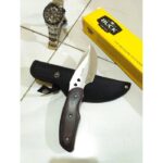 Gagangnya terbuat dari kayu yang pas digenggaman, memberikan kenyamanan dan cengkeraman yang optimal. Dilengkapi dengan sarung (sheath) dari kulit PU yang memudahkan Anda untuk menggantungnya di sabuk, sehingga pisau selalu siap diakses kapan pun dibutuhkan. Desainnya yang ergonomis dan ringkas membuatnya mudah dibawa dalam setiap petualangan.