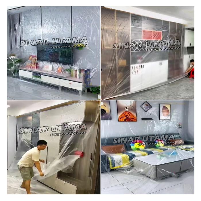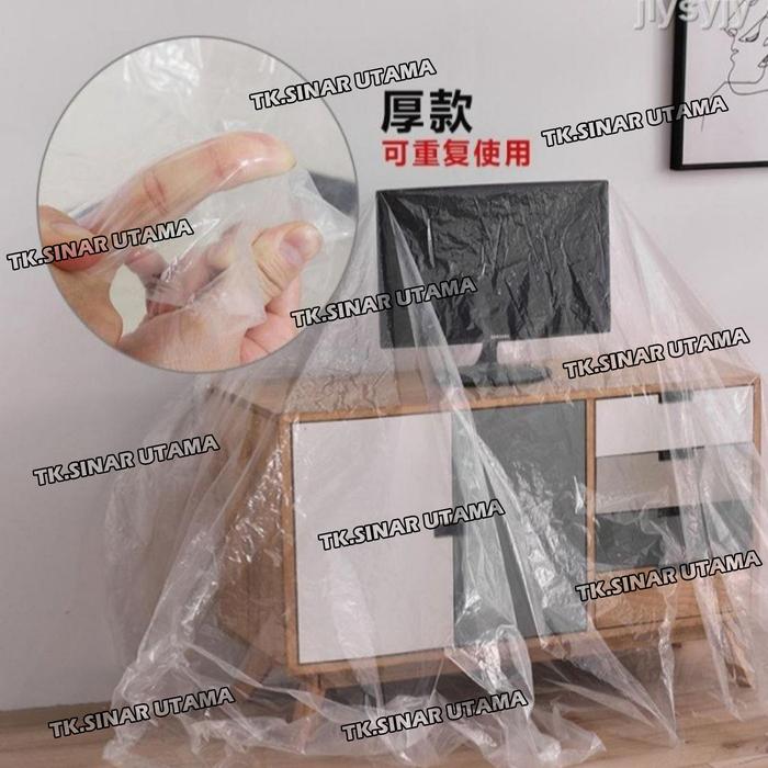 Tutupi dan lindungi perabotan rumah tangga Anda dengan mudah menggunakan plastik penutup furniture serbaguna ini. Ideal untuk situasi renovasi, pindahan rumah, atau bahkan penyimpanan jangka panjang. Plastik ini efektif melindungi sofa, kasur, lemari, dan barang berharga lainnya dari debu, cipratan cat, percikan air, dan kelembapan.