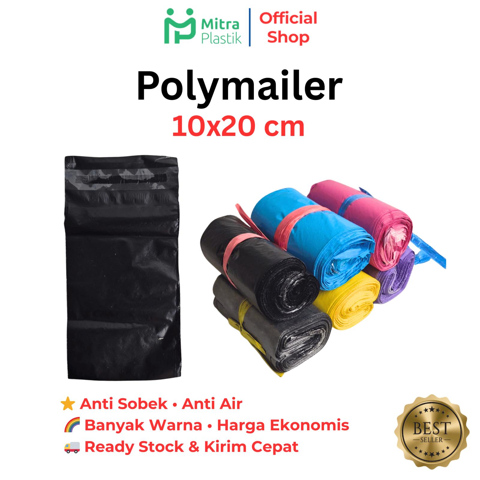 - Polymailer: Kantong plastik fleksibel berbahan polyethylene (PE) yang dirancang khusus untuk pengiriman barang, terutama dalam e-commerce. Bersifat ringan, kedap air, dan umumnya memiliki perekat (lem seal) untuk penutupan yang praktis.