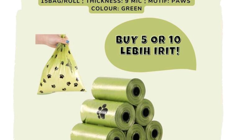 Setiap roll berisi 15 lembar kantung yang kompatibel dengan semua model dispenser plastik poop standar. Warna hijau yang segar memudahkan identifikasi. Keunggulan utama produk ini adalah kemampuannya terurai secara alami (fully degradable) dan dapat dijadikan kompos (compostable), mengurangi jejak plastik konvensional di lingkungan.