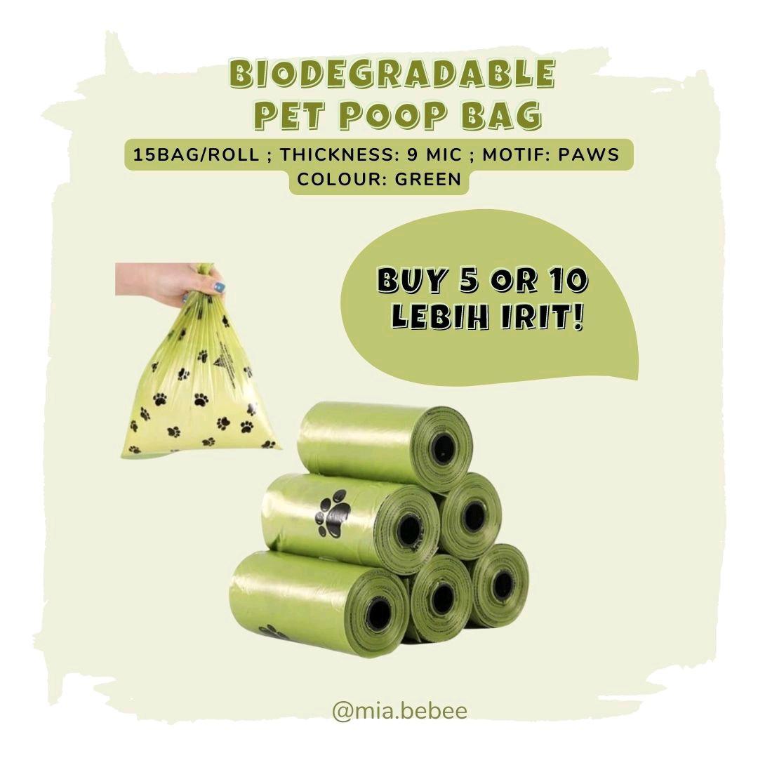 Setiap roll berisi 15 lembar kantung yang kompatibel dengan semua model dispenser plastik poop standar. Warna hijau yang segar memudahkan identifikasi. Keunggulan utama produk ini adalah kemampuannya terurai secara alami (fully degradable) dan dapat dijadikan kompos (compostable), mengurangi jejak plastik konvensional di lingkungan.