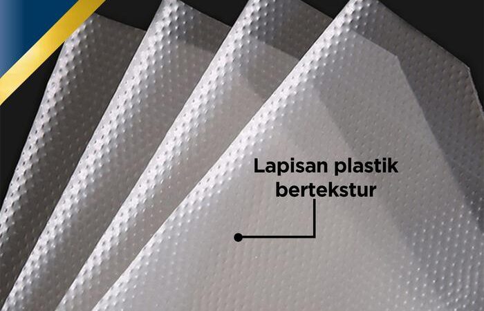 - Emboss: Tekstur permukaan yang tidak rata (bertekstur) yang sengaja dibuat untuk meningkatkan daya cengkeram dan mengurangi efek licin.