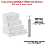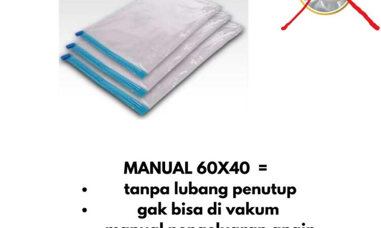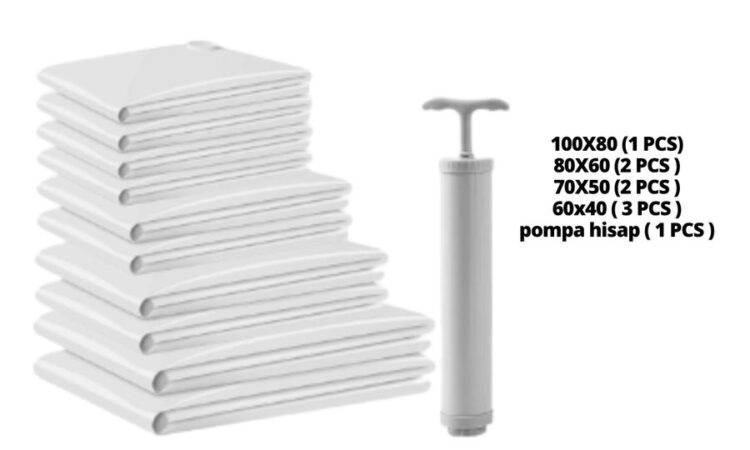 - Vakum Compression Bag: Kantong penyimpanan yang dapat mengompres pakaian dengan mengurangi volume udara di dalamnya, membuatnya lebih hemat ruang.