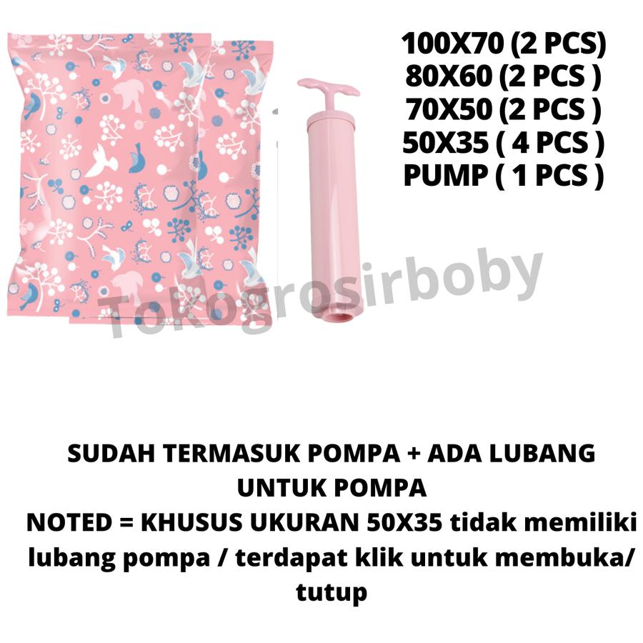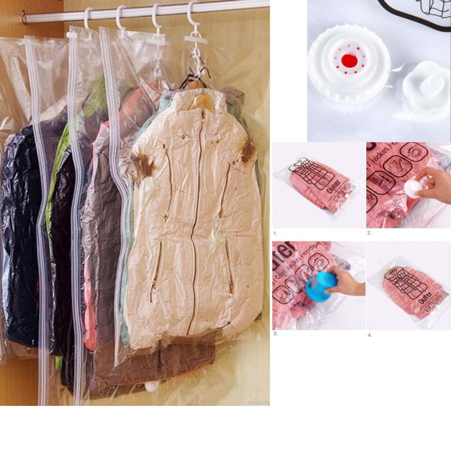 - Vakum Compression Bag: Kantong penyimpanan yang dapat mengompres pakaian dengan mengurangi volume udara di dalamnya, membuatnya lebih hemat ruang.