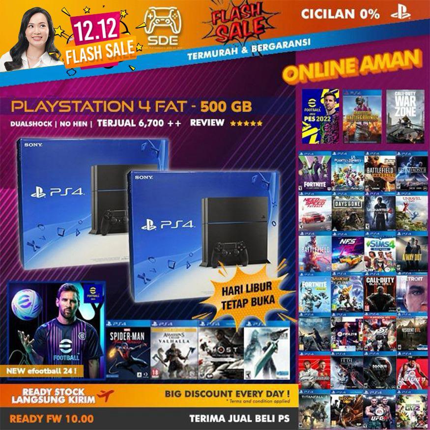 Tersedia PS4 FAT 500GB versi original (bukan Slim/Pro) dengan kondisi fullset dan garansi resmi. Dapatkan bonus menarik hanya di kami!
