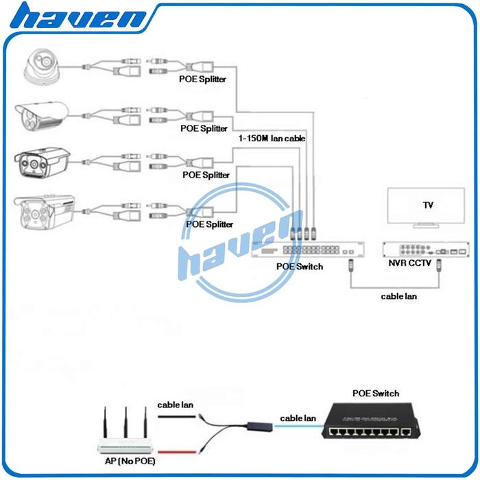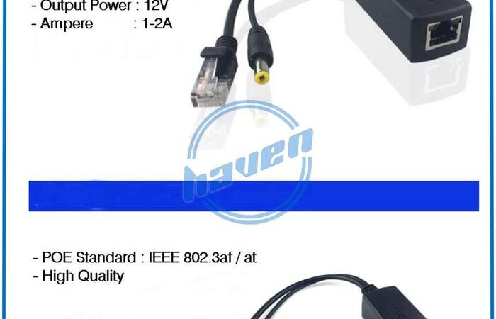 - Poe Splitter: Perangkat yang memisahkan daya dari data pada kabel Ethernet. Daya yang biasanya bertegangan tinggi (44-57V) diubah menjadi tegangan yang lebih rendah (seperti 5V, 12V) yang sesuai untuk perangkat yang tidak memiliki fitur Poe built-in.