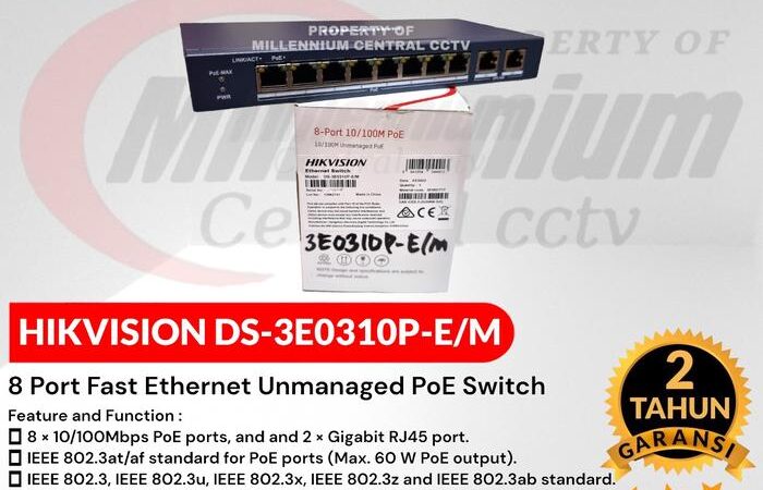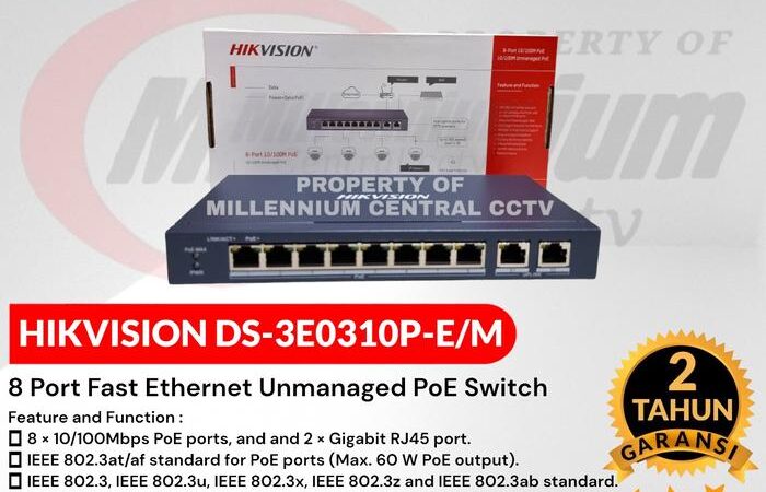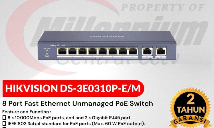 | Port Jaringan | 8x Port PoE 10/100 Mbps + 2x Port Gigabit RJ45 |