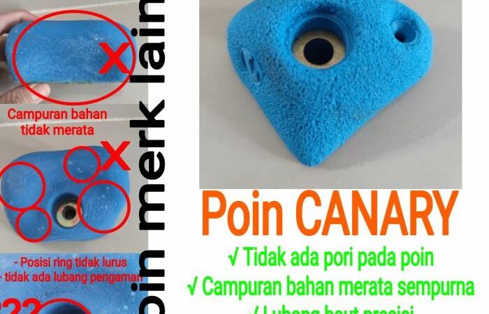 - Poin Panjat / Climbing Holds: Balok-balok yang digunakan sebagai pijakan atau pegangan pada dinding panjat. Biasanya terbuat dari resin berkualitas tinggi.