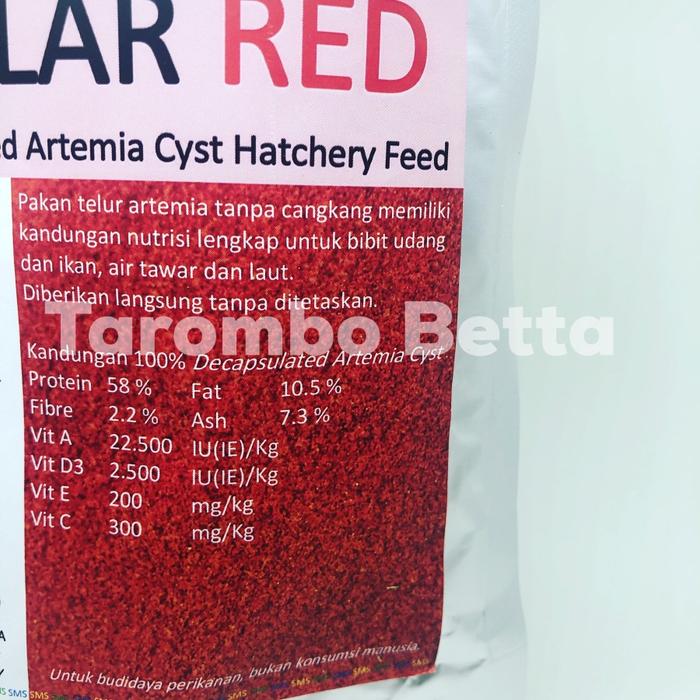 Hemat waktu dan biaya tanpa ribet mengultur pakan alami! Polar Red adalah Artemia instan siap saji yang telah melalui proses khusus menghilangkan cangkangnya (Shell Free), sehingga aman untuk burayak berumur 4 hari hingga ikan dewasa. Cukup tuang, beri sedikit air, aduk, dan langsung berikan pada ikan. Nutrisinya yang tinggi mendukung pertumbuhan yang cepat, sehat, dan merata.