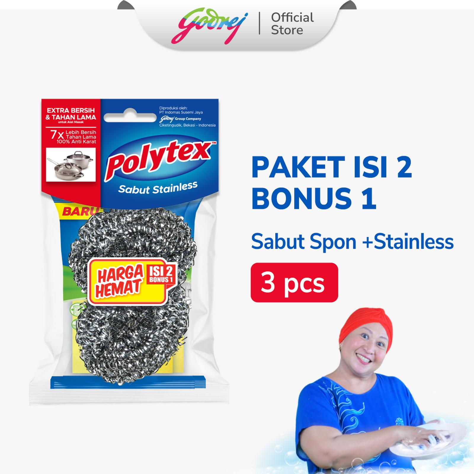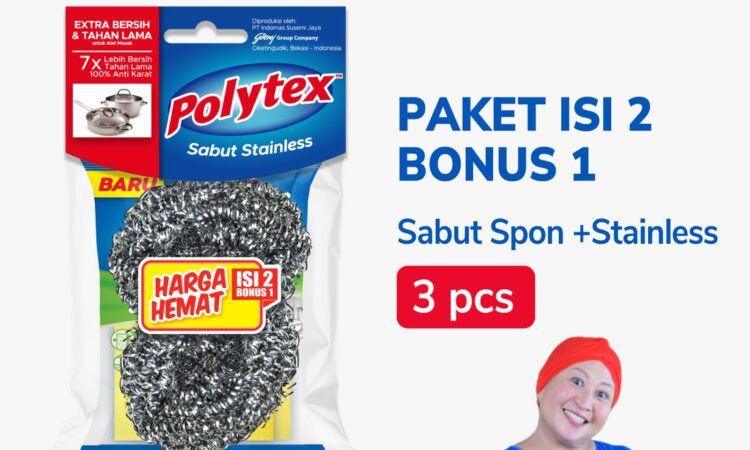 | Bonus Sabut Stainless 1 | Khusus untuk menggosok noda membanding seperti kerak pada panci atau wajan tanpa merusak permukaan. |