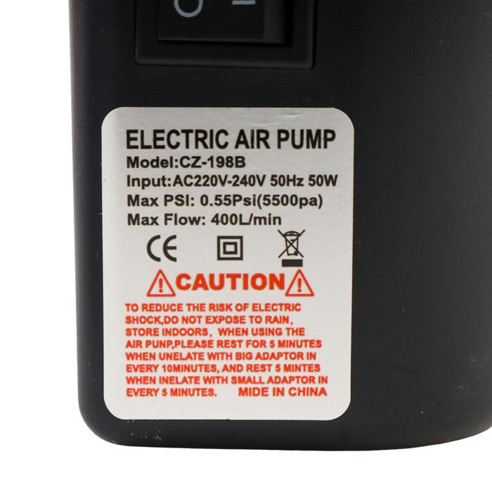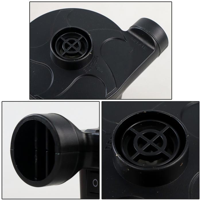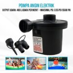 | Multifungsi: Dilengkapi 3 pin plug dan valve adaptor untuk berbagai jenis inflatable. Cocok untuk kasur angin, perahu karet, kolam renang portable, dan mainan. | Daya: Input AC 220-240V, 50 Hz, 50 W |