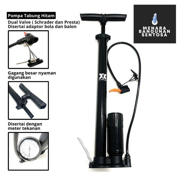 | Pompa Hitam | Besi | ABS & Besi | Dual valve (Schrader & Presta), adaptor bola & balon. | 60 cm |