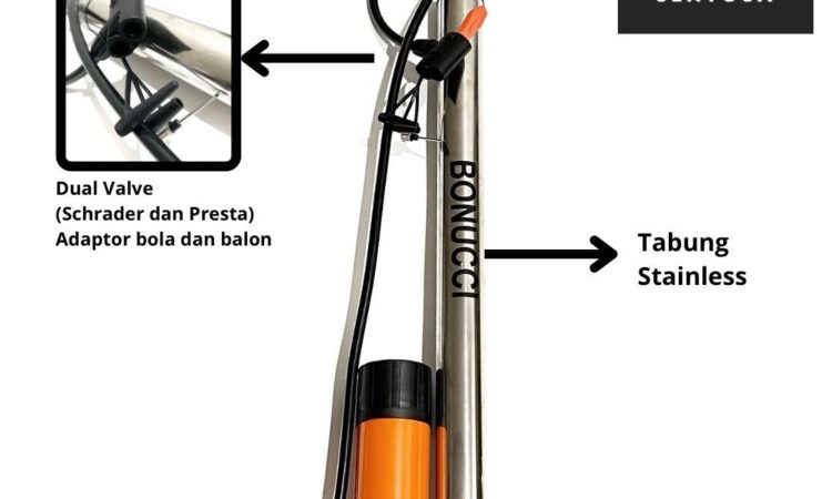 - Dual Valve: Fitur pada pompa yang memiliki dua kepala (nozzle) berbeda untuk dapat mengisi dua jenis katup ban, yaitu Schrader (umum pada mobil, motor, sepeda kota) dan Presta (umum pada sepeda balap/road bike).
