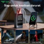 | Fungsi 3-in-1 | Sebagai pompa ban, power bank untuk isi ulang gadget, dan senter LED dengan 3 mode (Penerangan, Sinyal Darurat, SOS). |