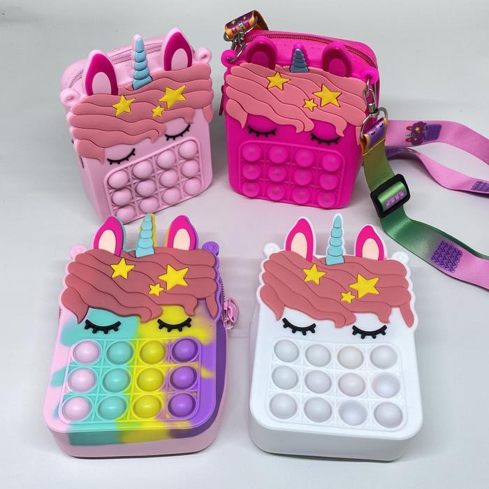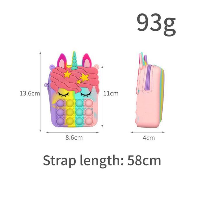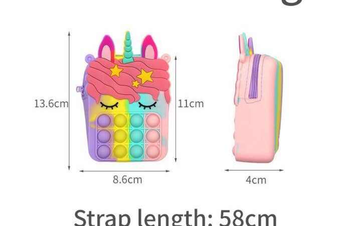 Tas unik berbentuk unicorn ini bukan sekadar tas, tapi juga teman bermain dan penghilang stres! Terbuat dari bahan silikon food grade berkualitas tinggi yang aman, tahan lama, mudah dibersihkan, dan dapat digunakan berulang kali.
