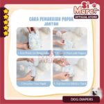 “Merci pakai ukuran S karena badan Merci kecil. Ukur dulu lingkar pinggang anjingmu ya, PawFriends! Happy shopping!”