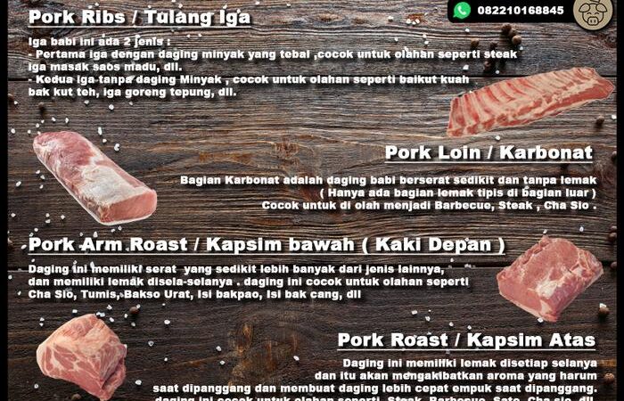 - Pork Knuckle / Kaki Belakang Babi: Bagian dari kaki belakang babi yang kaya akan jaringan ikat dan lemak, membuatnya sangat empuk dan beraroma ketika dimasak dalam waktu lama.