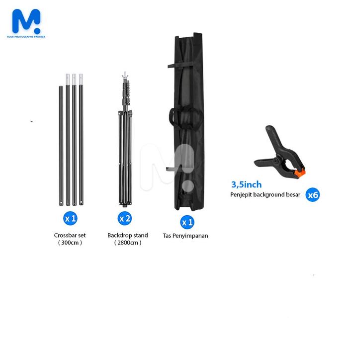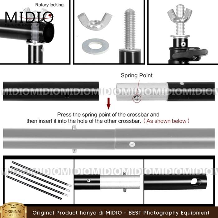 | Lebar Maksimal: 300 cm | 2x Kaki Tripod Penyangga | Studio Foto Profesional & Rumahan |