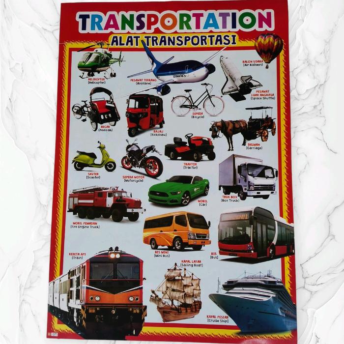 | 4 | Transportasi | Berisi gambar berbagai kendaraan darat, laut, dan udara. |