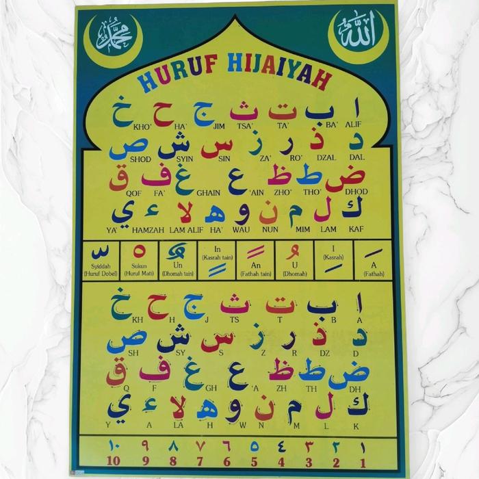 - Huruf Hijaiyah: Huruf-huruf dalam abjad Arab yang merupakan dasar untuk membaca Al-Qur’an. Poster ini membantu anak mengenal bentuk dan pelafalan dasar setiap huruf.