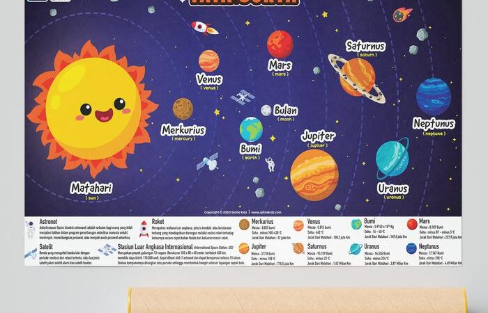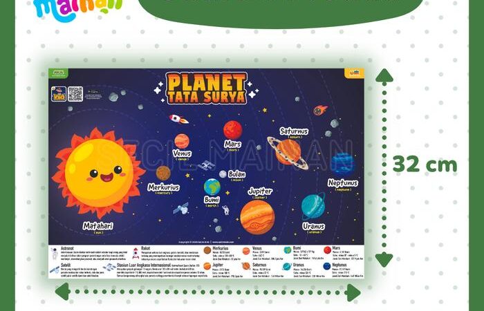 Jelajahi keajaiban luar angkasa bersama anak Anda dengan poster edukasi premium kami! Dirancang khusus untuk pelajar TK dan SD, poster ini menampilkan visual planet-planet dalam tata surya dengan detail yang jelas dan warna-warna cerah, merangsang minat belajar dan memudahkan pemahaman konsep astronomi dasar.