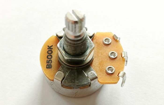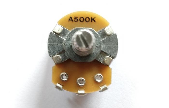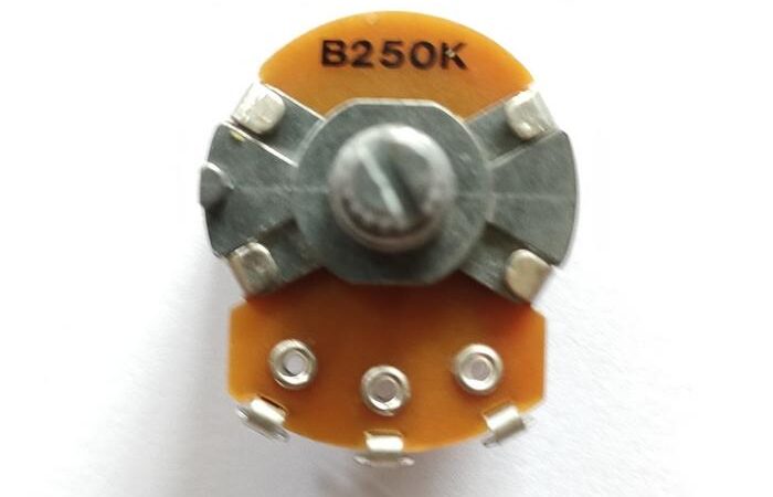- A500K/B250K: Kode yang menunjukkan nilai resistensi (500K ohm dan 250K ohm) serta tipe logaritmik (Audio/A) atau linier (B). A500K umumnya untuk volume, sedangkan B250K untuk tone.
