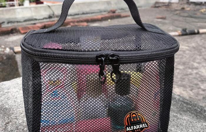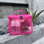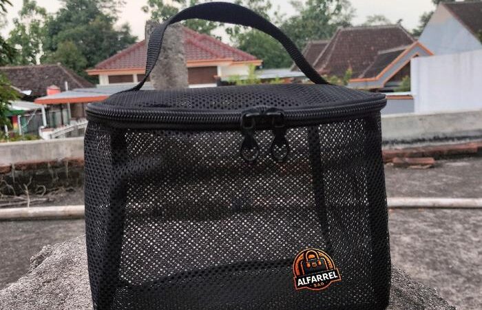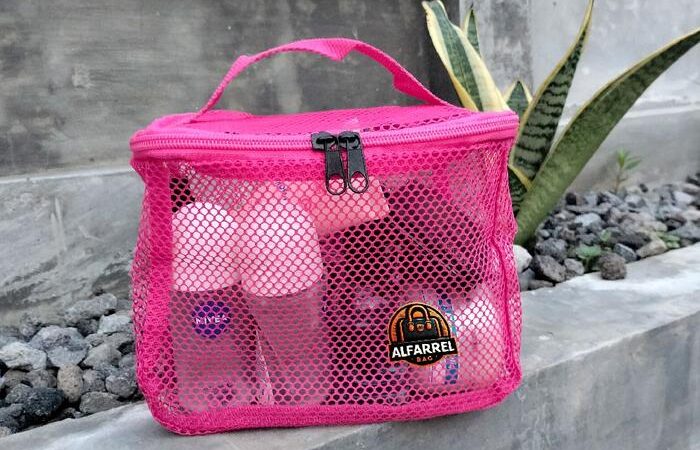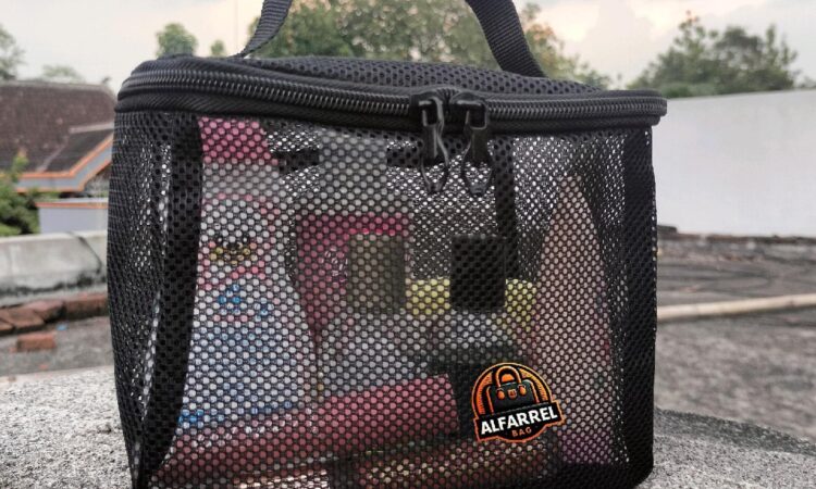- Mesh: Jenis material yang memiliki tekstur berlubang-lubang seperti jaring. Material ini kuat, fleksibel, dan memberikan sirkulasi udara yang baik, sehingga sangat cocok untuk menyimpan barang yang perlu “bernapas” seperti spons makeup atau kuas.