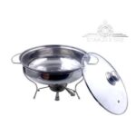 - Round Chafing Dish: Wadah penghangat makanan berbentuk bulat dengan sistem pemanas di bawahnya, biasanya digunakan untuk prasmanan.