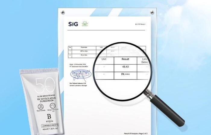 - SPF 50 PA+++: Tingkat perlindungan tinggi terhadap sinar UVB (SPF) dan UVA (PA+++).