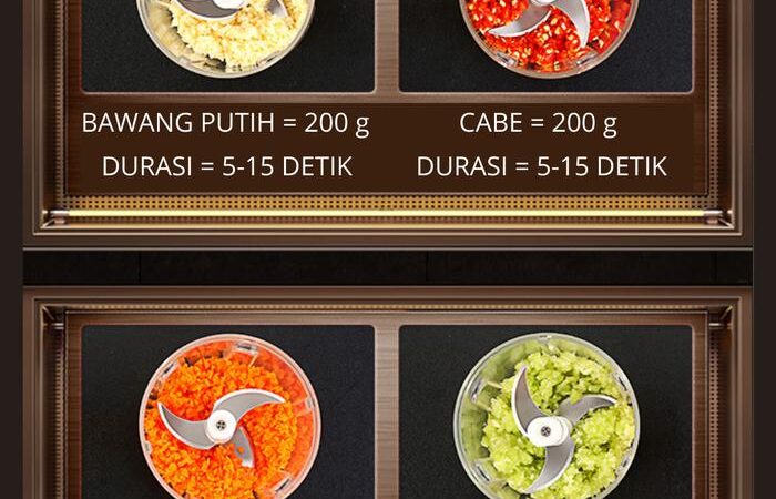 - Pisau Multifungsi & Tajam: 3/6 mata pisau stainless steel memastikan hasil potongan yang halus dan merata untuk segala jenis bahan.
