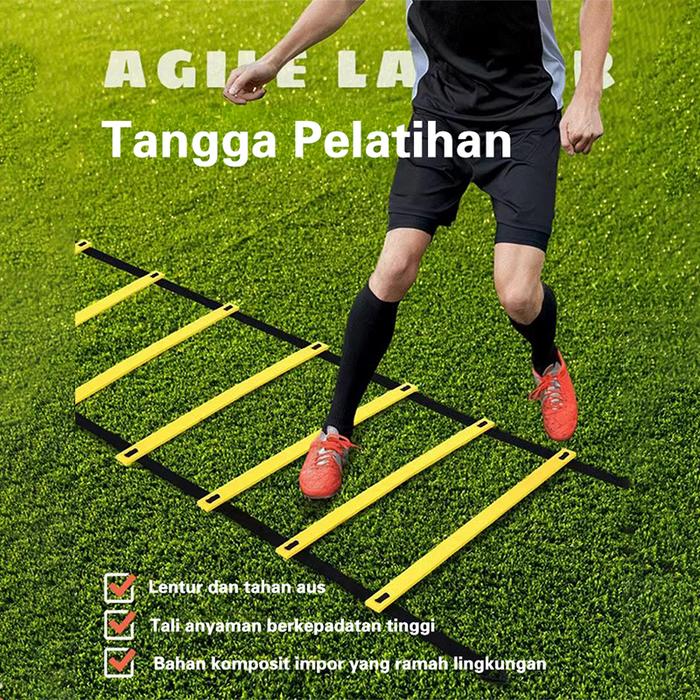 - Agility Ladder (Tangga Kelincahan): Alat latihan berbentuk tangga yang digunakan untuk melatih kecepatan dan ketepatan gerak kaki melalui berbagai pola langkah.