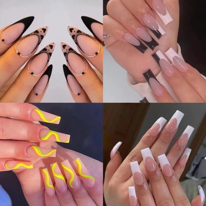 - Stiletto: Bentuk kuku runcing dan tajam di bagian ujung, mirip dengan sepatu hak tinggi stiletto.