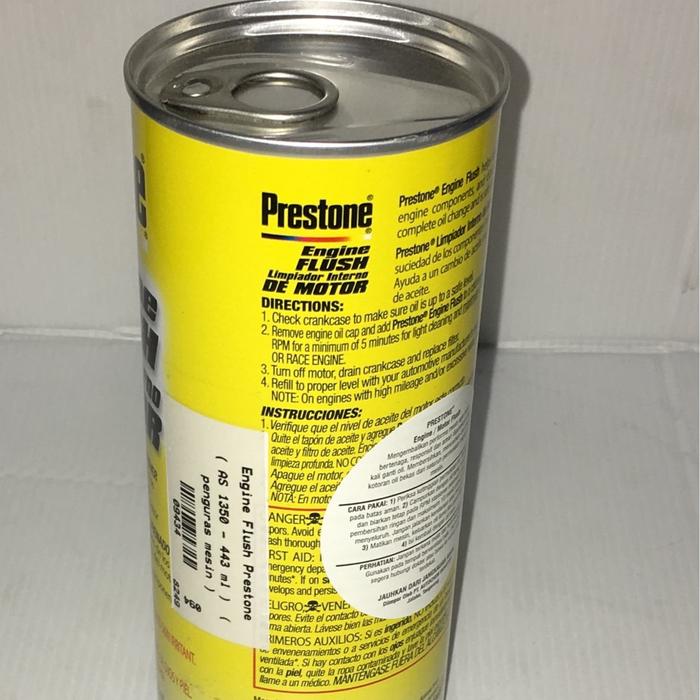 | Membersihkan seluruh permukaan internal mesin | 2. Tuangkan Prestone Engine Flush ke dalam mesin. Nyalakan mesin dan biarkan menyala pada kondisi idle (RPM normal) selama 5-10 menit. Jangan mengemudi atau menaikkan RPM. |