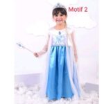 | Desain Autentik | Motif dan siluet gaun didesain menyerupai gaun Elsa dalam film Frozen. Terdapat sleting di belakang untuk memudahkan memakai dan melepas. |