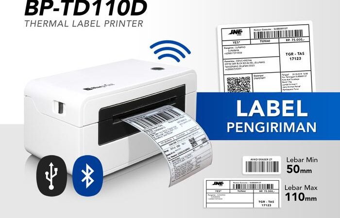 Temukan solusi cetak barcode dan label resi dengan Printer Thermal BLUEPRINT BP-TD110D. Dilengkapi koneksi USB dan Bluetooth, printer ini cocok untuk bisnis retail, logistik, atau kebutuhan cetak harian dengan kecepatan tinggi hingga 150 mm/detik.