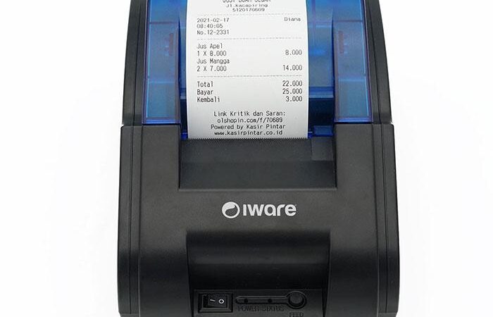| Port RJ11 (Cash Drawer) | Kertas thermal 58mm | Daya: DC 9V / 2A |