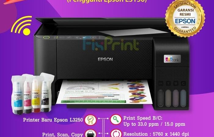 | L3250 BLACK | Print, Scan, Copy, Wireless | Dilengkapi konektivitas nirkabel untuk cetak mudah dari ponsel dan laptop. |