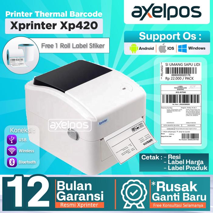 XPRINTER XP-420B adalah printer barcode direct thermal (tanpa ribbon) yang dirancang untuk kebutuhan retail bisnis dengan volume rendah hingga menengah. Printer ini menawarkan kecepatan cetak hingga 6 inci/detik (152 mm/detik) dengan resolusi 203 dpi, didukung oleh prosesor 32-bit dan memori 8 MB FLASH ROM serta 8 MB SDRAM. Kapasitas flash memory dapat diperluas hingga 4 GB untuk penyimpanan data yang lebih besar.
