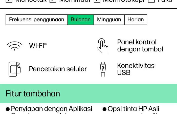 - ppm (Pages Per Minute): Jumlah halaman yang bisa dicetak per menit.