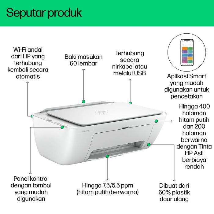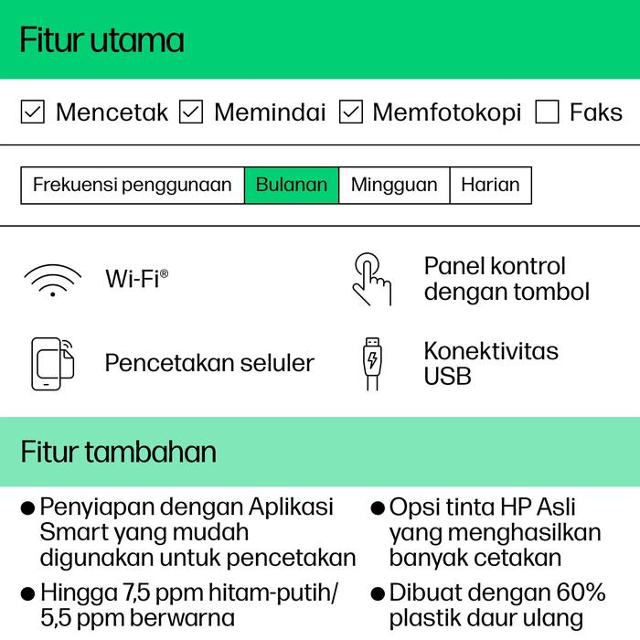 | Tinta Included | 1 Cartridge Hitam + 1 Tri-Color (HP 682) |