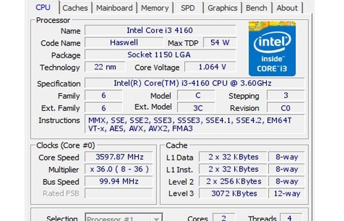 | Core i3-4160 | 3.60 GHz | 3 MB | Second |
